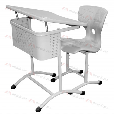 | Школьный стол с наклонной столешницей ШСТ15 и школьный стул ШС10, серый |