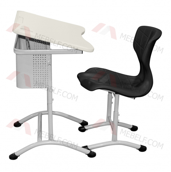 | Школьный стол с наклонной столешницей ШСТ15 и школьный стул ШС10, белый и черный |