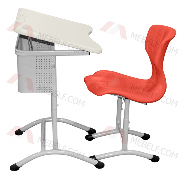 | Школьный стол с наклонной столешницей ШСТ15 и школьный стул ШС10, белый и оранжевый |
