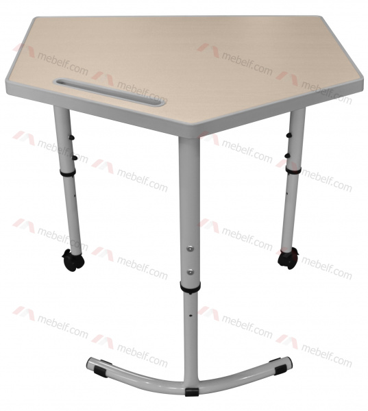 Стол поставляется на 2 колёсных опорах и 2 заглушках, с регулировкой по высоте или без регулировки, под конкретную группу роста